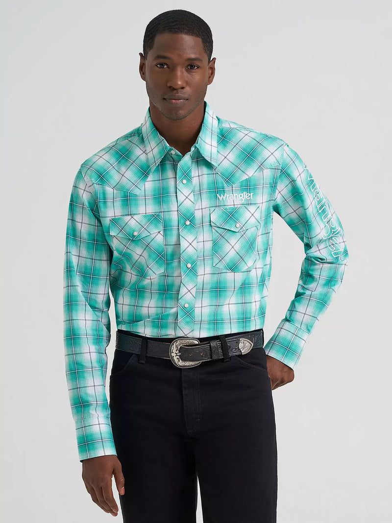 2026 - WRANGLER MENS LOGO WESTERN SNAP SHIRT - TURQUOISE SEA