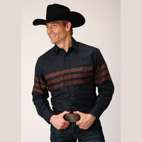 ROPER MENS BORDER STRIPE WESTERN SHIRT