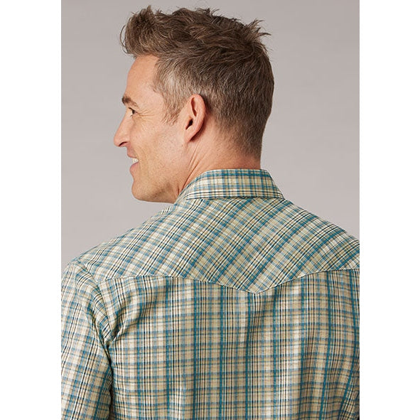 ROPER MENS SHORT SLEEVE TAN PLAID WESTERN SHIRT