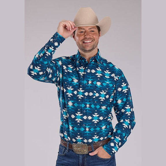 ROPER MENS AZTEC SERAPE SHIRT - BLUE