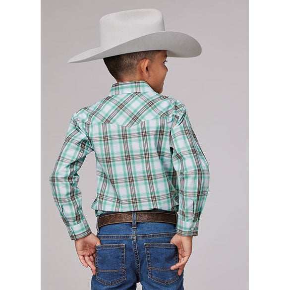 ROPER BOYS COLD SPRINGS PLAID WESTERN SHIRT - GREEN