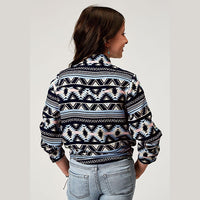 This ROPER GIRLS NAVY AZTEC PRINTED RAYON SHIRT boasts elegant navy tones and a striking Aztec print. Crafted with luxurious rayon, its long sleeve design is accented by 1 point front and back yokes, as well as 1 point curved flap pockets. A snap closure adds a touch of sophistication, while garment washing ensures a soft and comfortable feel. Elevate your wardrobe with this exquisite piece.