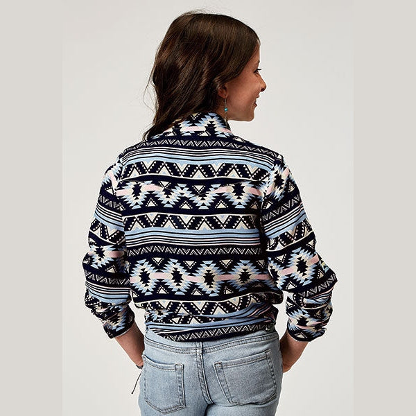 ROPER GIRLS NAVY AZTEC PRINTED RAYON SHIRT