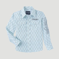 WRANGLER BOYS LOGO SNAP SHIRT - AQUA PRINT