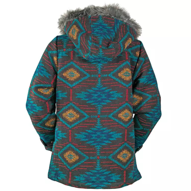 Nothing brightens a cool winter day like our Myra Jacket! This beautiful tapestry jacket features a hood, drawstring waist, and hip pockets and is lined in cotton, plus has a warming layer to keep you toasty all winter long!