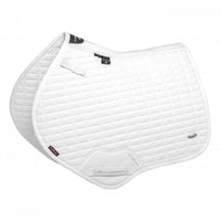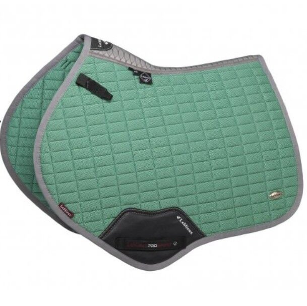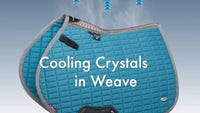 The LeMieux self-cooling saddle pads are made of the innovative FeelCool ® Ice material in which a cooling crystal is kneaded into the fabric. This is activated by moisture; the greater the moisture, the greater the cooling effect. The crystals have incredible heat absorption and transfer properties that gradually absorb and dissipate the horse's sweat. Under extreme conditions, once discharged, a reverse rapid cooling effect is produced.