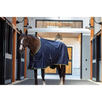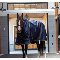 This 600 denier turnout is waterproof and breathable, and comes complete with a removable neck rug. It has a double buckle adjustable chest, fleece wither, shoulder pleats for ease of movement, crossed surcingles and a generous tail flap. Because this sheet has no fiberfill, it is super versatile; you can use it in the warmer months for rainy days without overheating your horse.