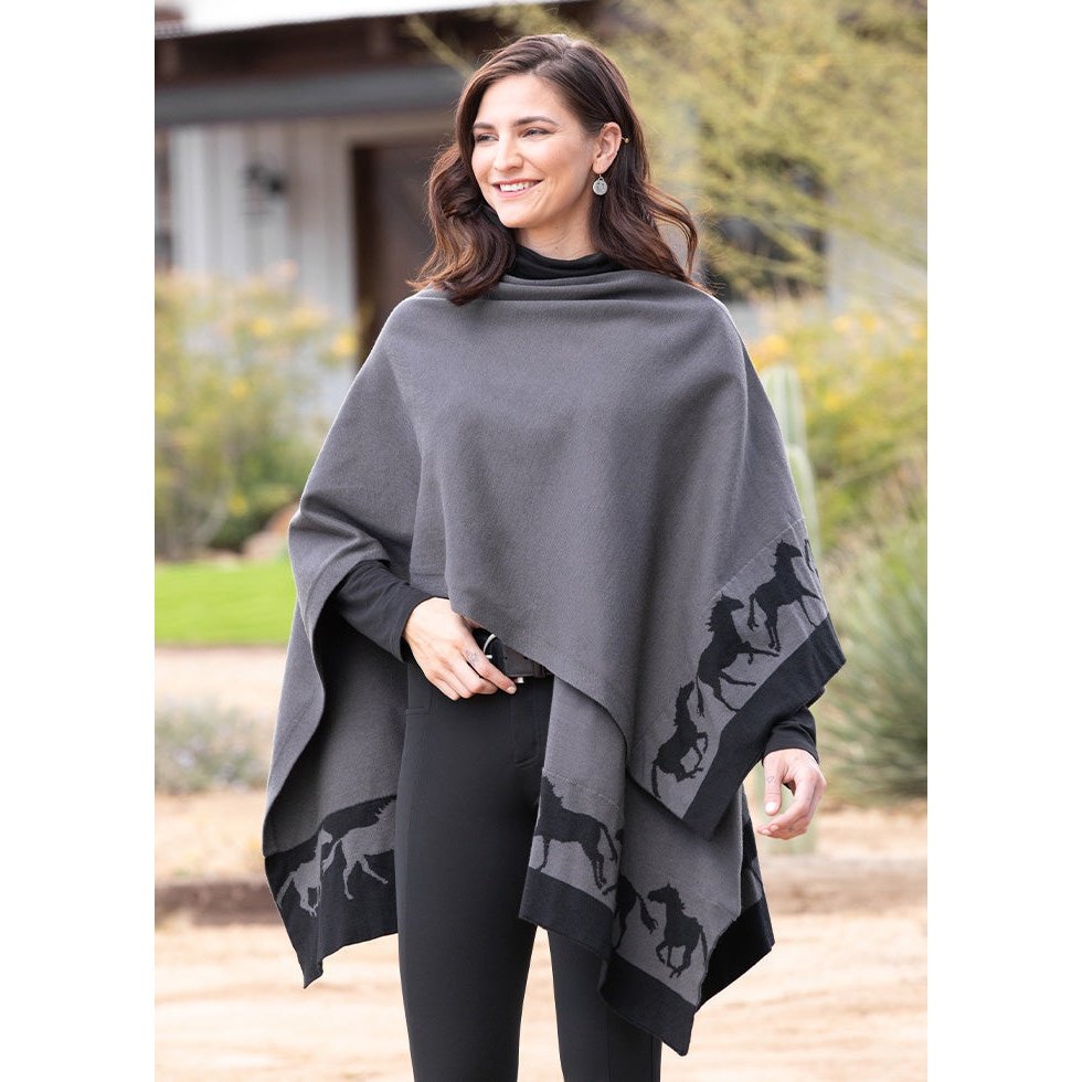- A wild herd of horses adorn the bottom of the wrap and makes this a wardrobe statement piece