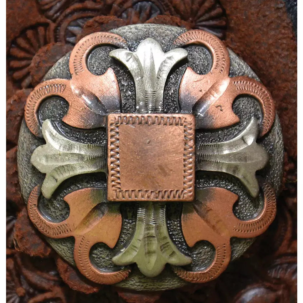 The MJ52 Josey-Mitchell Renegade Rancher features a roughout hardseat with copper buckstitching and alternating spot trim. The all roughout saddle provides the extra "stick" you need during an aggressive run. The 3-Way Rigging eliminates the need for a rear cinch because it distributes the rigging pressure over a greater area on the horse's back.