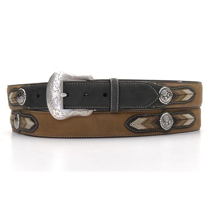 Enjoy comfort and durability from this mens Nocona belt. Belt features silver conchos and a beautiful Multicolor accent lacing design on strap. Removable silver buckle finishes out this beautiful belt. This belt has the look!