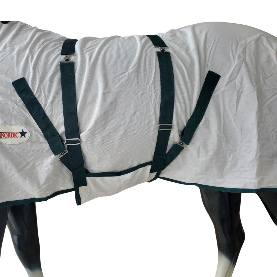 The Nordic star Standard fly sheet offers protection from insects and UV light. This lightweight sheet features surcingle front closures and a belly band for complete coverage from those pesky bugs.