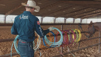 The Powerline4® Lite combines four-strand construction with the feel and handle of the original MoneyMaker®. It consists of four strands of twisted nylon and polyester lament wound around a CoreTech™ nylon core. This increases the rope’s body and widens the loop, allowing you to throw with more accuracy and control. Plus, its smooth surface permits faster feeds.