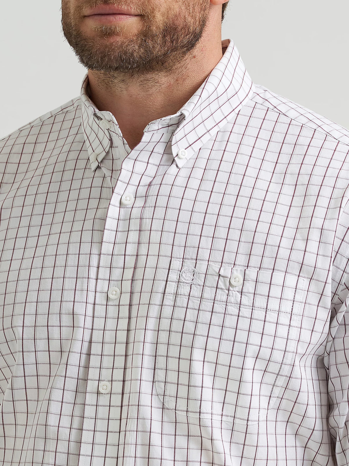 WRANGLER MENS GEORGE STRAIT BUTTON DOWN SHIRT - WINE CHECK