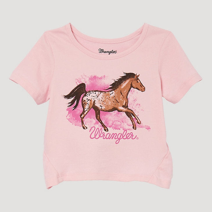 WRANGLER LITTLE GIRLS PRANCING HORSE TEE - PINK