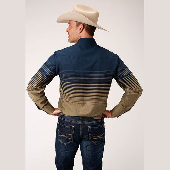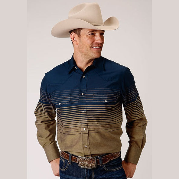 STETON MENS NAVY GOLD OMBRE WESTERN SHIRT